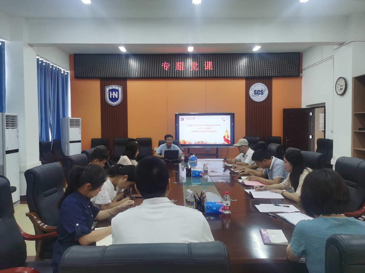 7月1日,围绕学习贯彻习近平总书记考察海南重要讲话精神、省第八次党代会精神等内容,公司党总支书记陈广锐为全体教工党员讲授了一堂专题党课。学院全体教工党员参加了党课学习。