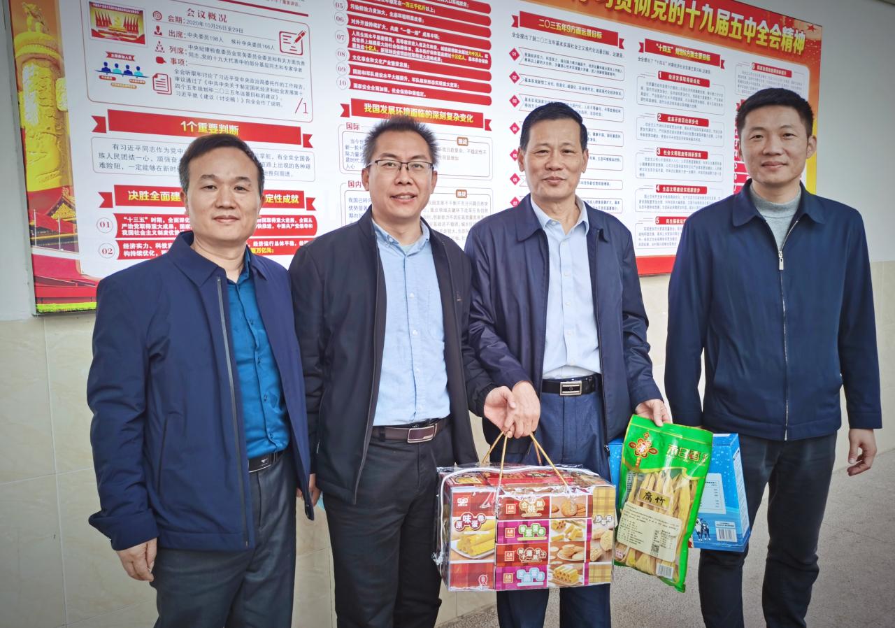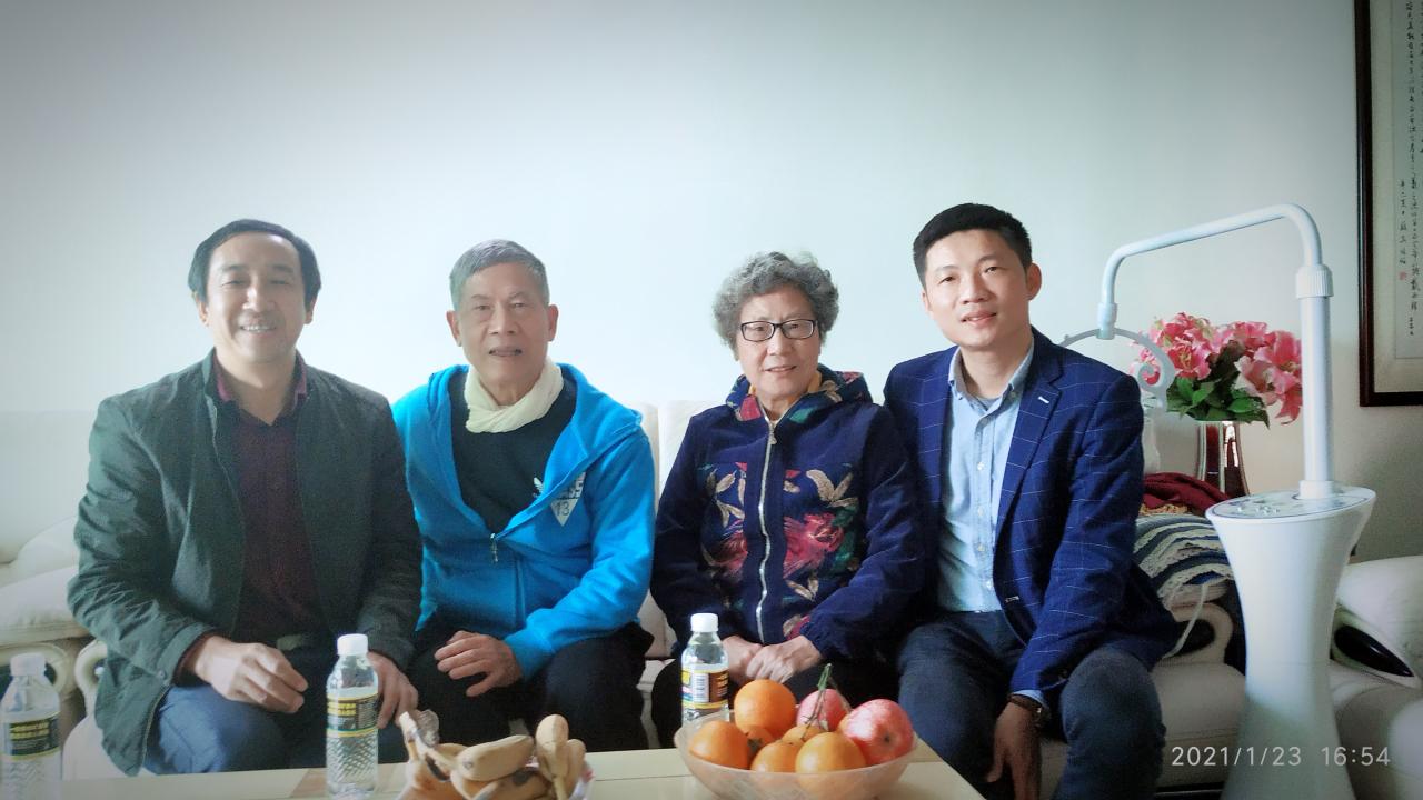 图1:党委书记陈广锐(右1)、执行经理曹春杰(左2)、副经理程杰仁(左1)与退休教师陈明锐合影