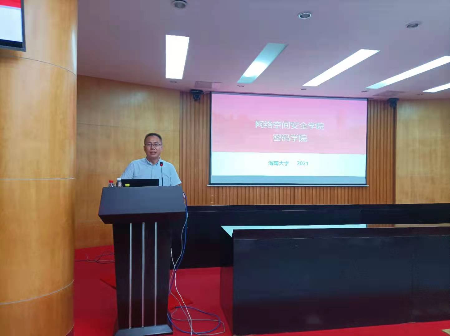 交流座谈会上,网络空间安全系副教授张殿围绕什么是网络空间安全、为什么需要保障网络空间安全两个主题,从不同层面分析了网络空间安全的重要性,并解读了习近平总书记在庆祝海南建省办经济特区30周年大会上的讲话“没有网络安全就没有国家安全”,阐述网络安全对于国家的重要性。