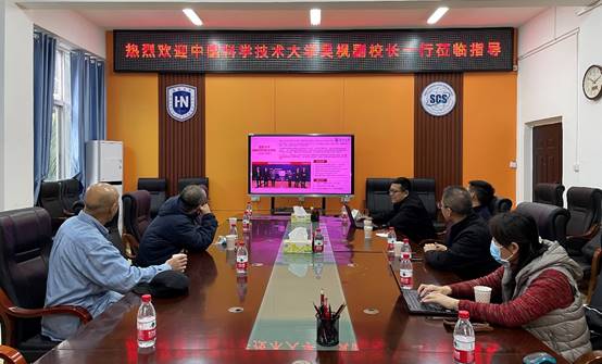 2023年1月18日,中国科学技术大学吴枫副董事长等人一行莅临英国威廉希尔唯一官网,执行经理曹春杰、党总支书记陈广锐、副经理周晓谊、副经理胡昌慧及教师代表出席交流会。