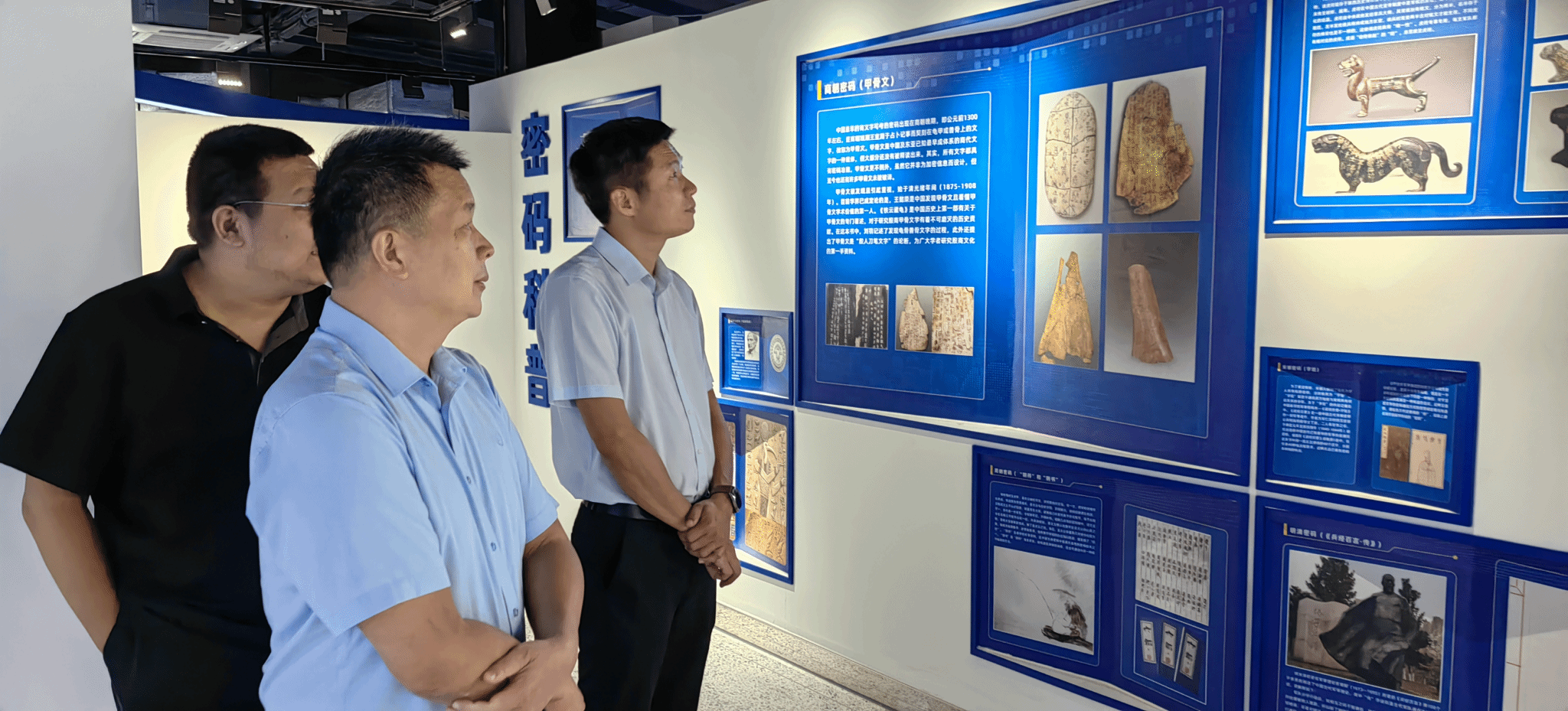 密码学院陈广锐书记陪同林鹏副厅长一行参观密码科普基地。 张殿 摄。